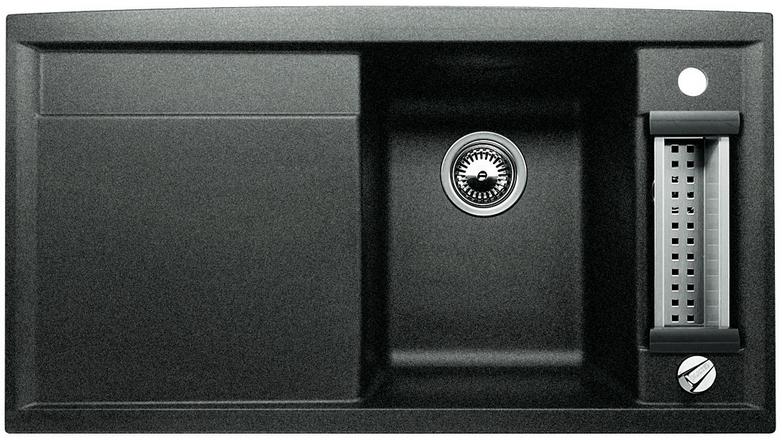 BLANCO AXIA 5 S-F, SILGRANIT until 10-2008, anthracite, with drain remote control, with accessories, Bowl right, 500 mm min. cabinet size