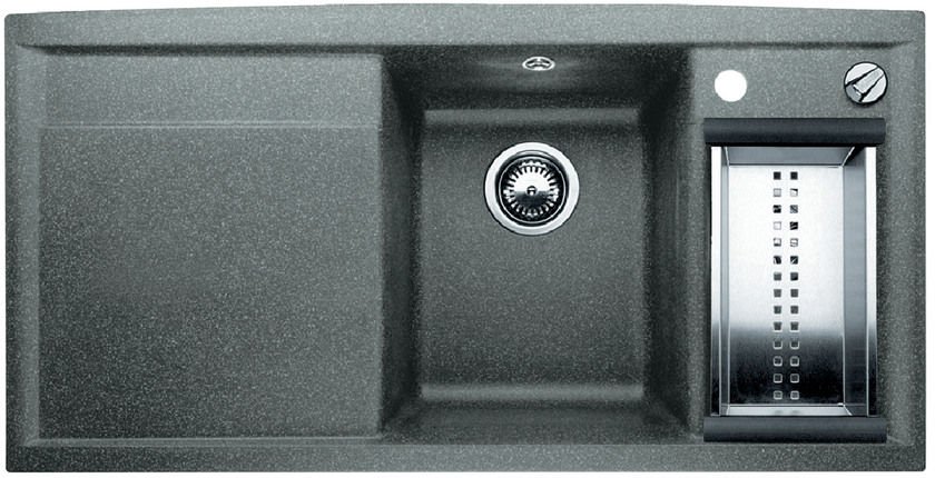 BLANCO AXIA 6 S, SILGRANIT until 10-2014, alu metallic, with drain remote control, w/o accessories, Bowl right, 600 mm min. cabinet size