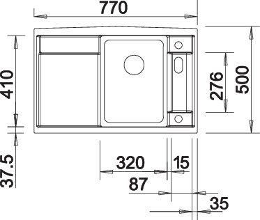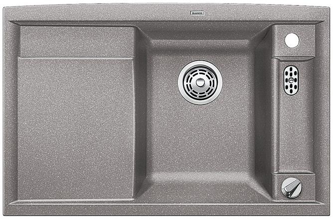 BLANCO AXIA II 45 S-F, SILGRANIT, alu metallic, with drain remote control, with accessories, Bowl right, 450 mm min. cabinet size