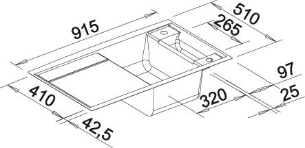 BLANCO AXIA II 5 S, SILGRANIT, white, with drain remote control, with accessories, Bowl right, 500 mm min. cabinet size