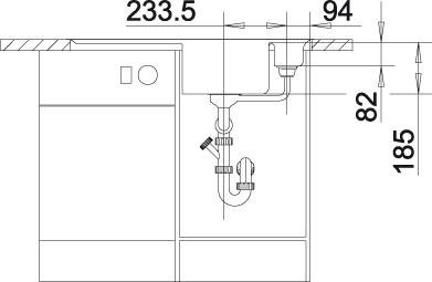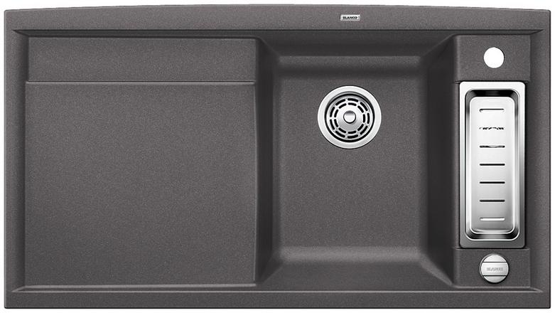 BLANCO AXIA II 5 S-F, SILGRANIT, rock grey, with drain remote control, with accessories, Bowl right, 500 mm min. cabinet size