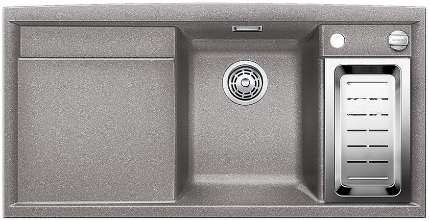 BLANCO AXIA II 6 S-F, SILGRANIT, alu metallic, with drain remote control, with accessories, Bowl right, 600 mm min. cabinet size