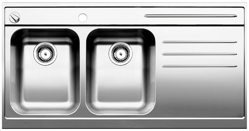 BLANCO AXIS 8 S-M, Stainless steel satin polish, with drain remote control, bowl left, 800 mm min. cabinet size
