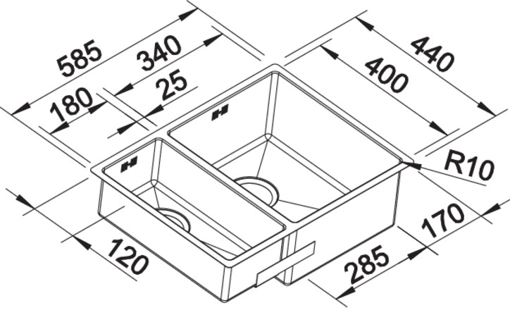 BLANCO CLAROX 340_180-UB, Stainless steel satin polish, w/o drain remote control, Bowl left, 600 mm min. cabinet size