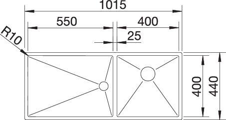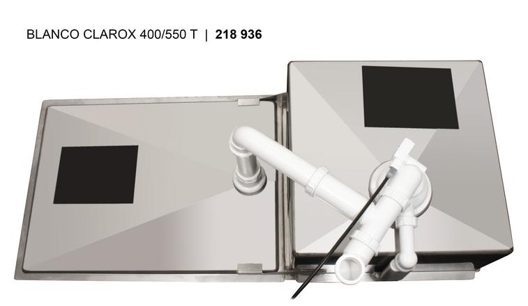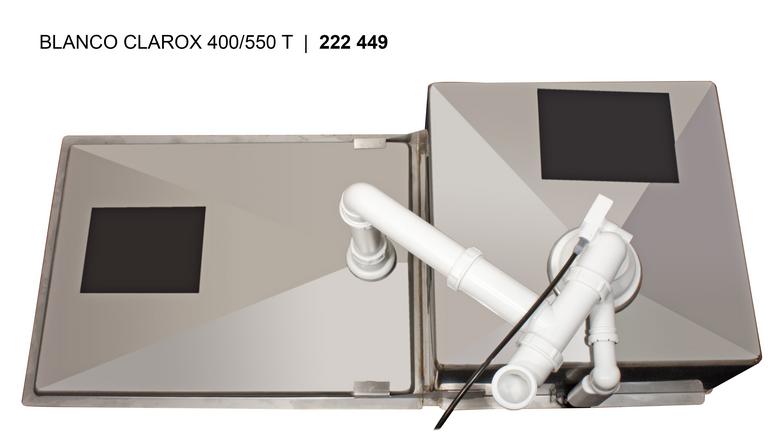 BLANCO CLAROX 400/550-T-F, Stainless steel satin polish, with drain remote control, Bowl right, 600 mm min. cabinet size