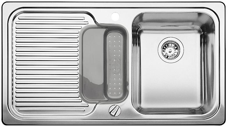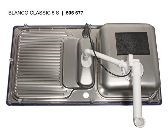 BLANCO CLASSIC 5 S, Stainless steel satin polish, with drain remote control, with colander, Bowl right, 500 mm min. cabinet size