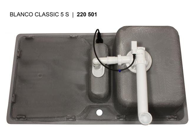 BLANCO CLASSIC 5 S-F, SILGRANIT until 10-2014, silk grey, with drain remote control, with colander, reversible, 500 mm min. cabinet size