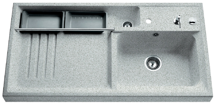 BLANCO MODUS-M 60, SILGRANIT Clean, greystone, with drain remote control, bowl right, 600 mm min. cabinet size