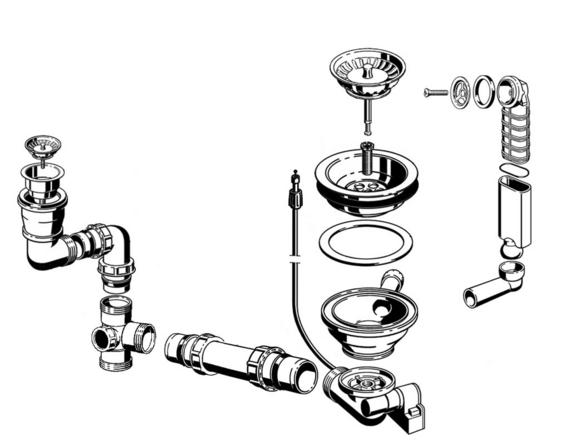 Fitting set 1 x 3.5" + 1 x 1.5" with pop-up control overflow round Spareparts |
