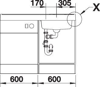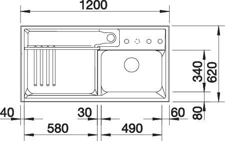 BLANCO MODUS-M 60, SILGRANIT until 10-2014, champagne, with drain remote control, with accessories, bowl right, 600 mm min. cabinet size