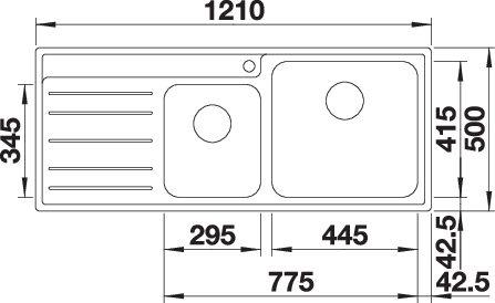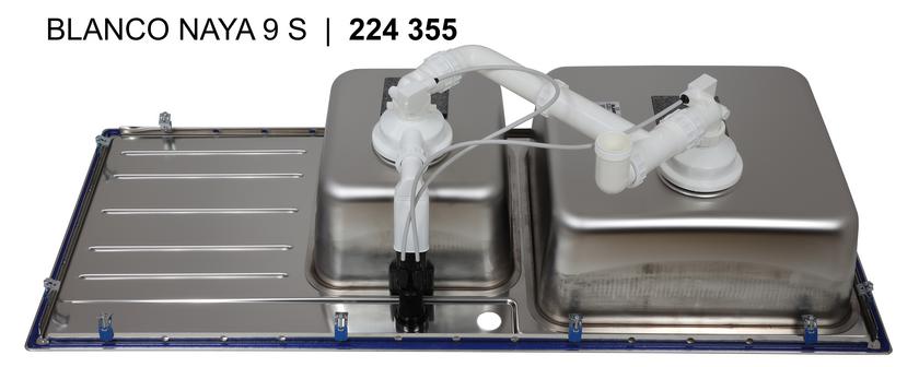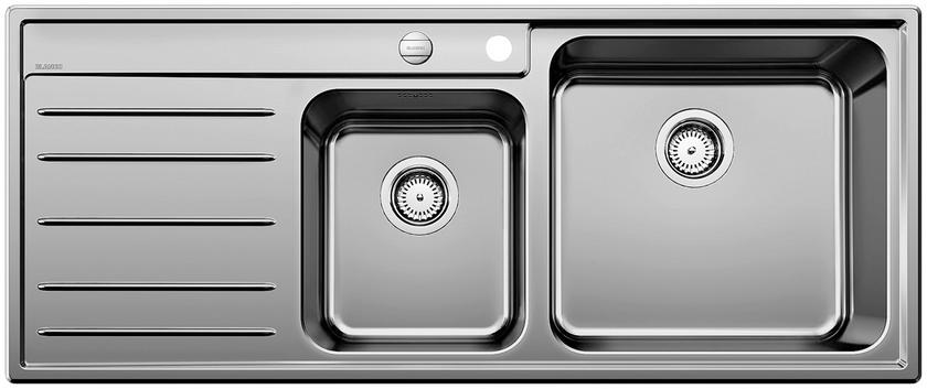 BLANCO NAYA 9 S, Stainless steel Linen, with drain remote control, Bowl right, 900 mm min. cabinet size