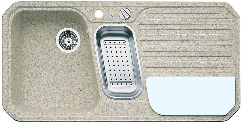 BLANCO PRIMO, SILGRANIT Clean, sand, with drain remote control, with stainless steel colander, Bowl left, 600 mm min. cabinet size