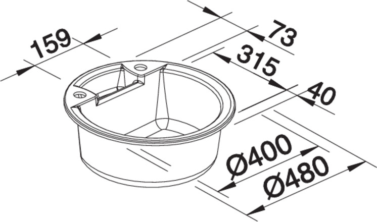 BLANCO RONDO Pro, SILGRANIT until 10-2014, tartufo, with drain remote control, w/o bowl layout, 450 mm min. cabinet size