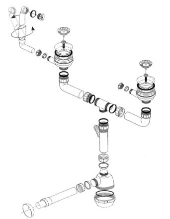 Fitting set 2 x 3.5'' without pop-up control round overflow AL Spareparts |