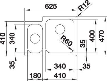 BLANCO SUPRA 340/180-IF, Stainless steel brushed finish, w/o drain remote control, Bowl right, 600 mm min. cabinet size