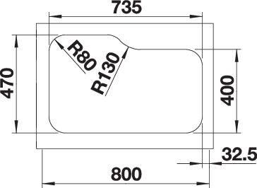 BLANCO SUPREME 735-U, Stainless steel satin polish, w/o drain remote control, w/o bowl layout, 800 mm min. cabinet size