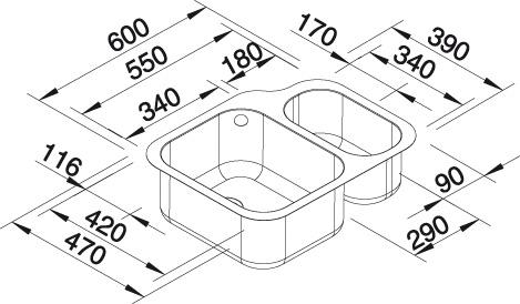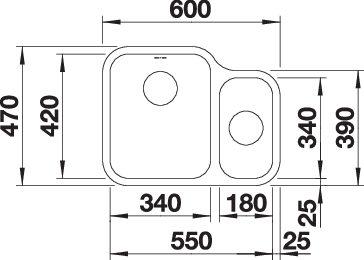 BLANCO YPSILON 550-U, Stainless steel satin polish, w/o drain remote control, Bowl left, 600 mm min. cabinet size