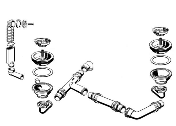 Fitting set 2 x 3.5" without pop-up control overflow round (replaced by 224820) Spareparts |