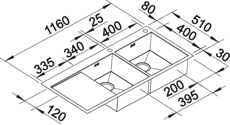 ATTENTION: Overflow has been changed from punched holes (angular overflow) to BLANCO C-overflow within the period 12/2010 - 01/2011. Please consider this upon selecting the fitting set and the overflow!