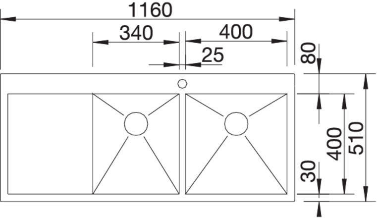 BLANCO ZEROX 8 S-IFB, Stainless steel, w/o drain remote control, Bowl right, 800 mm min. cabinet size