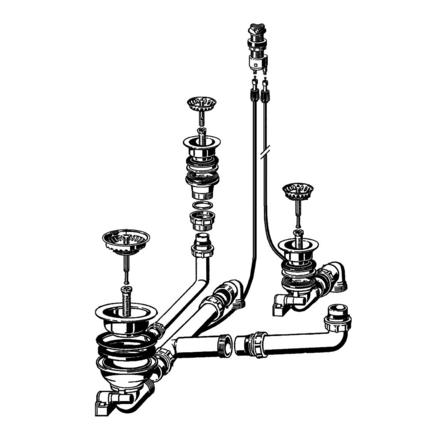 Fitting set 2 x 1.5" - 1 x 3.5" with pop-up control without overflow (replaced by 224816) Spareparts |