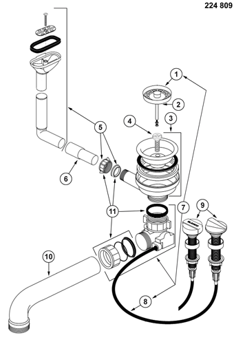 Fitting set 1 x 3.5"(2x) pop-up control overflow oval/horizontal