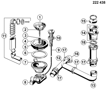 Fitting set 1 x 3.5" + 1 x 1.5" with pop-up control overflow round