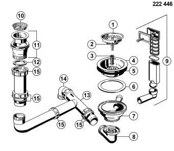 Fitting set 1 x 3.5" + 1 x 1.5" without pop-up control overflow rectangular (replaced by 225079 and 118822)