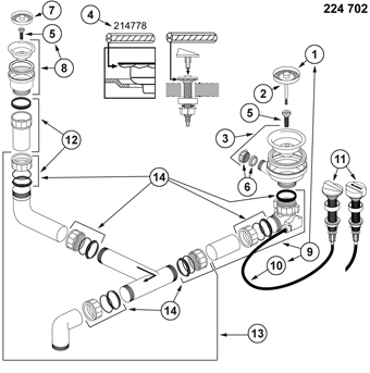 Fitting set 1 x 3.5" - 1 x 1.5" with pop-up control without overflow