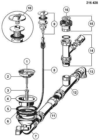 Fitting set 1 x 3.5" pop-up control round horizontal overflow (1x) (replaced by 224039)