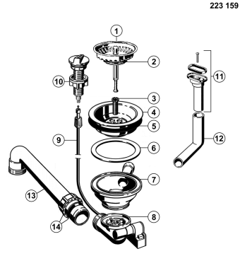 Fitting set 1 x 3.5" with pop-up control overflow oval/horizontal (replaced by 224806)