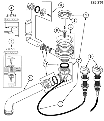 Fitting set 1 x 3.5" with pop-up control overflow round modified sieve