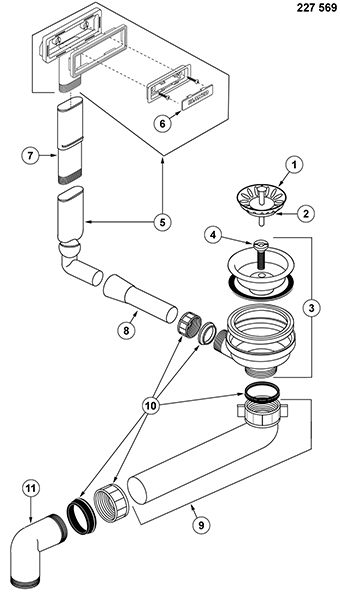 Fitting set 1 x 3.5" without pop-up control C-overflow