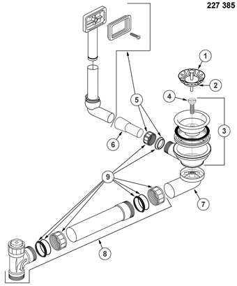 Fitting set 1 x 3.5" without pop-up control overflow angular