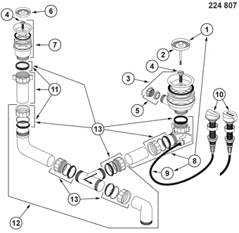 Fitting set 1 x 3.5''-1 x 1.5''pop-up control without overflow modify sieve