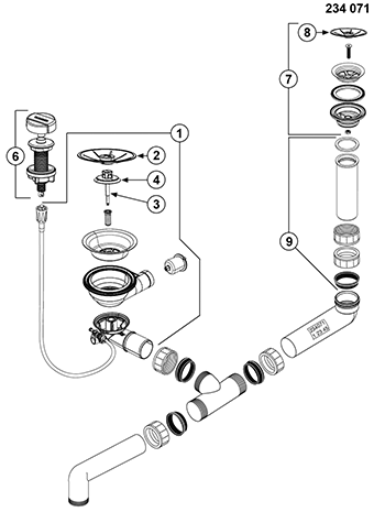 Fitting set 1x3,5" - 1x1,5" with pop-up control without overflow InFino