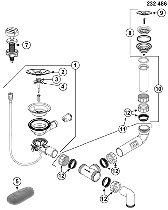 Fitting set 1x3,5" - 1x1,5" with pop-up control without overflow