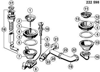 Fitting set 2 x 3.5", 1 x 1.5" with pop-up control (replaced by 224813)