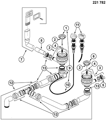 Fitting set 2 x 3.5" with pop-up control overflow rectangular