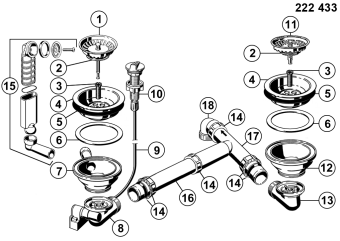 Fitting set 2 x 3.5" with pop-up control overflow round (replaced by 224710 and 126081)