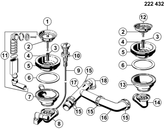 Fitting set 2 x 3.5" with pop-up control overflow round (replaced by 224805)