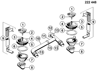 Fitting set 2 x 3.5" without pop-up control 2x overflow rectangular