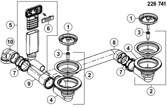 Fitting set 2 x 3.5" without pop-up control C-overflow modified sieve