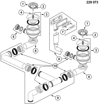 Fitting set 2 x 3.5" without pop-up control C-overflow