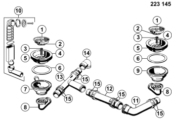 Fitting set 2 x 3.5" without pop-up control overflow round (replaced by 224820)