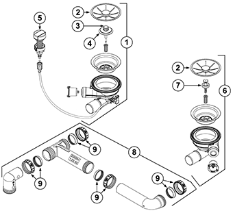 Fitting set 2x3,5" with pop-up control overflow centered InFino