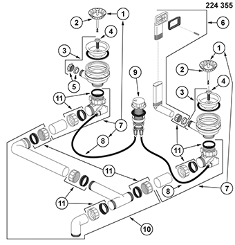 Fitting set 2x3.5" double pop-up-contol overflow angular