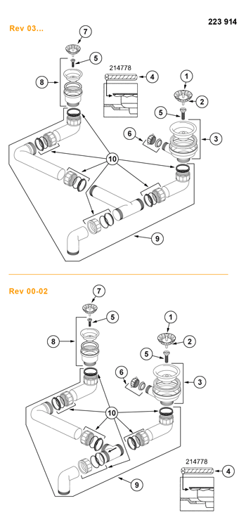 Fitting set 3.5" (1x) - 1.5" (1x) without pop-up control and overflow
