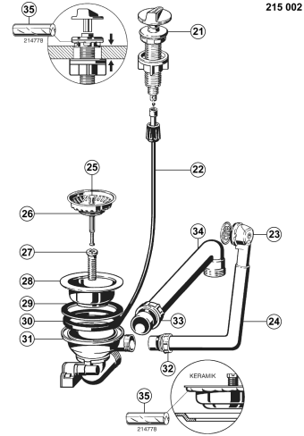 Fitting set 3.5" pop-up control AXON 45 S overflow round (replaced by 222434)