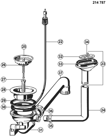 Fitting set 3.5" with bowden cable without pop-up control overflow oval